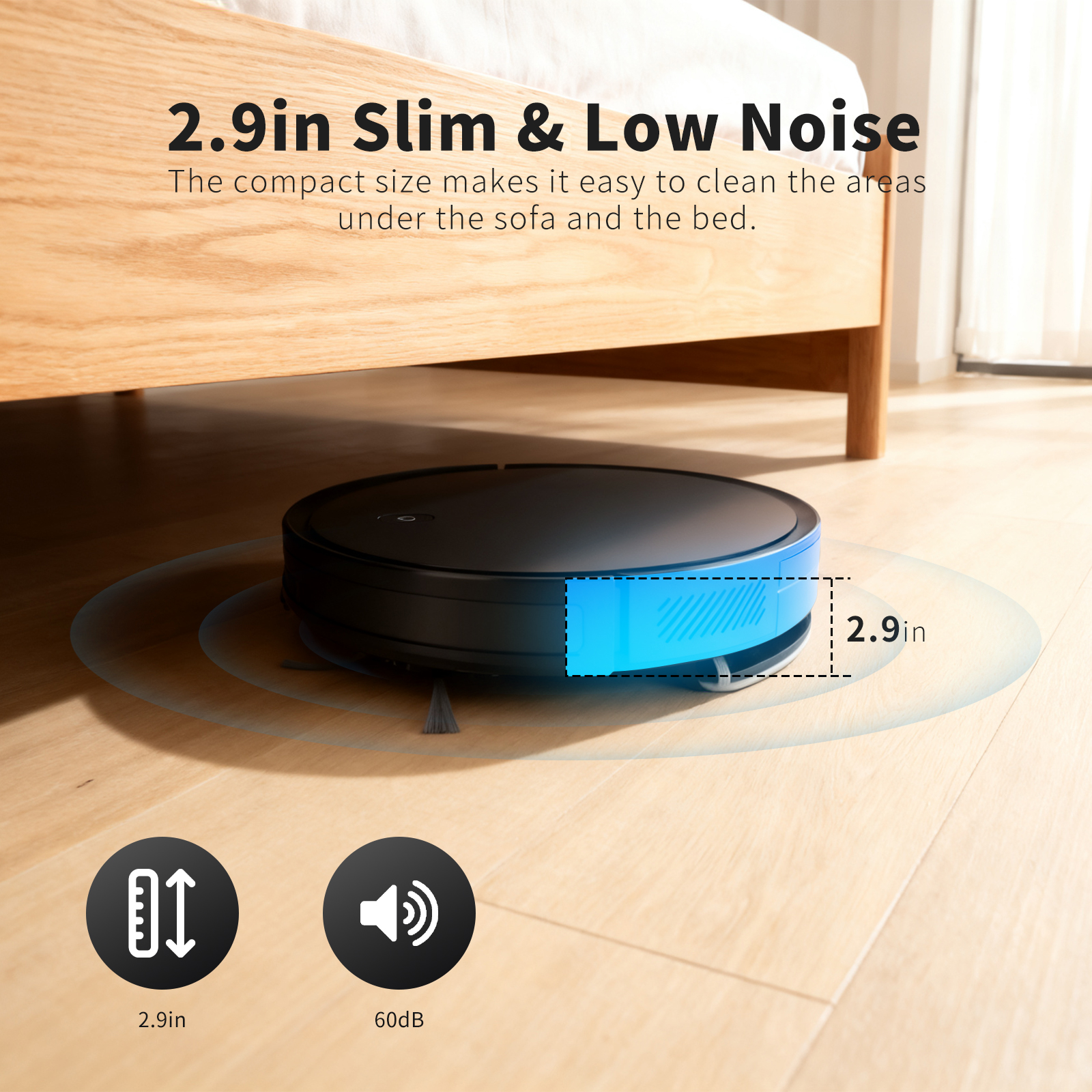 • The single charge can last for 120 minutes of sweeping and mopping. In silent mode, it can clean an area of 1500 square feet. When the battery level is low or the task is completed, it will automatically return to the charging base and be ready for recharging at any time.
